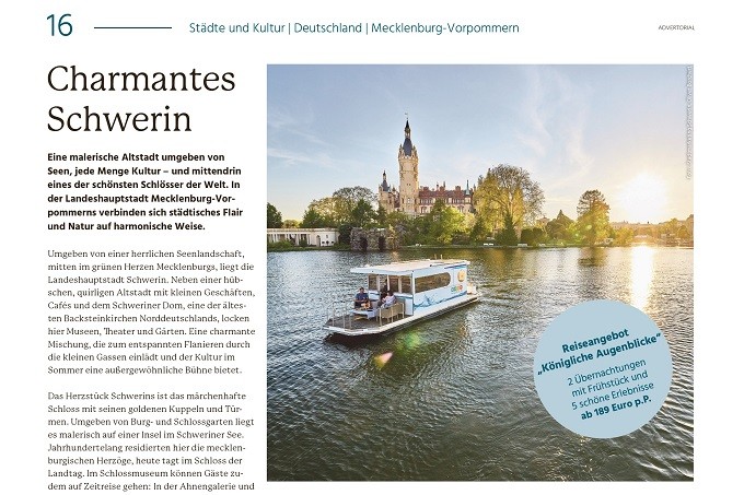 Schwerin-Advertorial im Reiseguide von DIE WELT