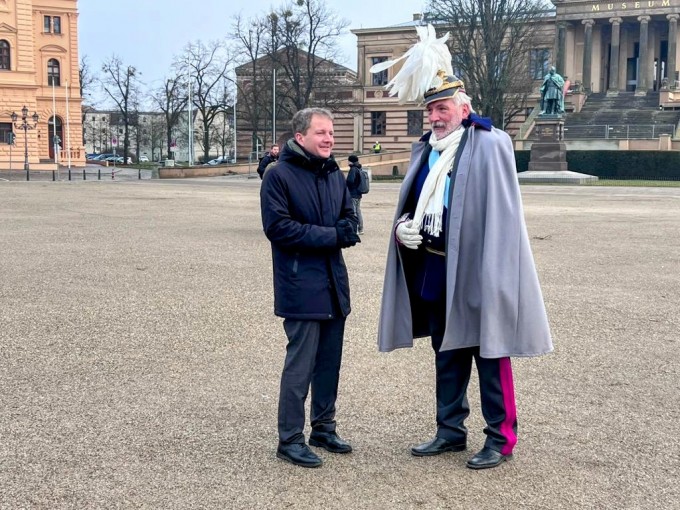 Am 28. Februar 1823 wurde Friedrich Franz II., späterer Großherzog und Bauherr des Schweriner Schlosses, geboren. Zu seinem 200. Geburtstag haben mehrere Schweriner Institutionen Aktionen in der Stadt organisiert. Neben Vorträgen im Dom und im Schleswig-Holstein-Haus und einer Geburtstagstorte vom Café Prag, gab es einen Social Media-Stummfilm, der Friedrich Franz II - dargestellt vom Schlossvereinsvorsitzenden Mathias Schott - ins Jahr 2023 katapultierte. Der Film ist weiterhin als zweiteiliges Reel auf Instagram zu finden. Schauen Sie mal rein!